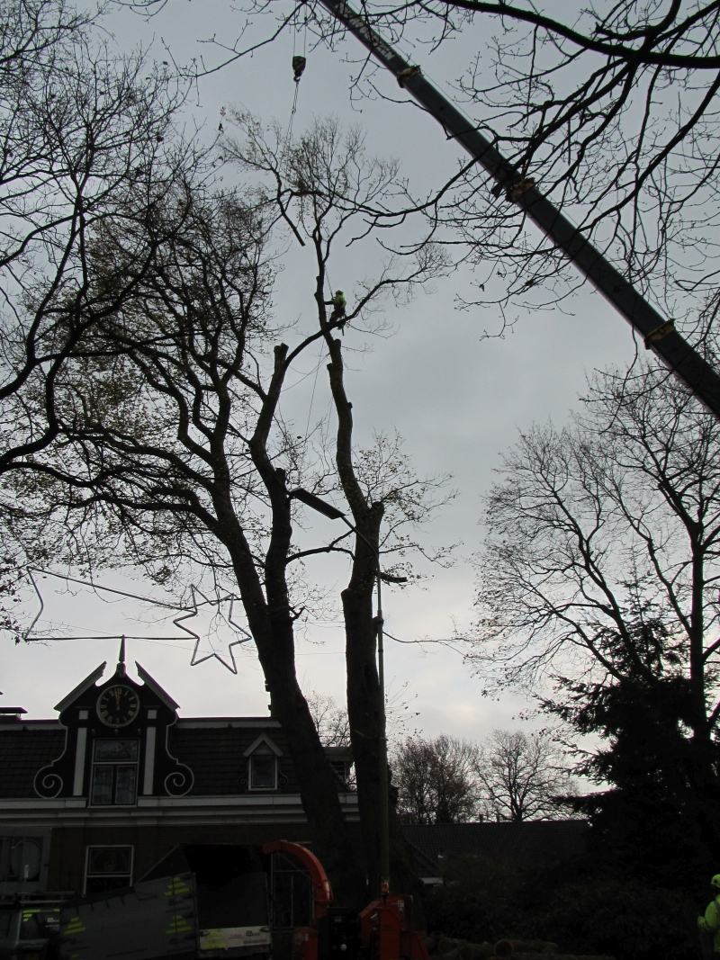 De boom was 30 meter hoog en zag er voor de leek prima uit. Hij moet met enige regelmaat geknot worden en dat is een speciale klus: dit is nodig om te voorkomen dat de boom in onbalans raakt (en mogelijk kan afbreken), maar ook weer niet teveel omdat de groei ervoor zorgt dat de er dikkere jaarringen komen die de stam meer stevigheid geven.